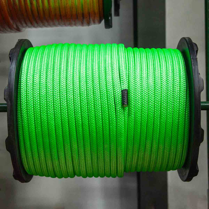 High Tenacity Double Braided Bull Rope provides the best in abrasion resistance, break strength and low stretch. The Pro ForceTM has a Polyester Jacket and a Ultra High Weight Molecular Polyethylene Core - HMPE® that gives this line almost double the break strength of our Husky Bull Rope. Premium Husky Urethane CoatingTM is applied to provide excellent resistance to abrasion. Special order any size. HMPE® is a registered trademark of DSM Corp.