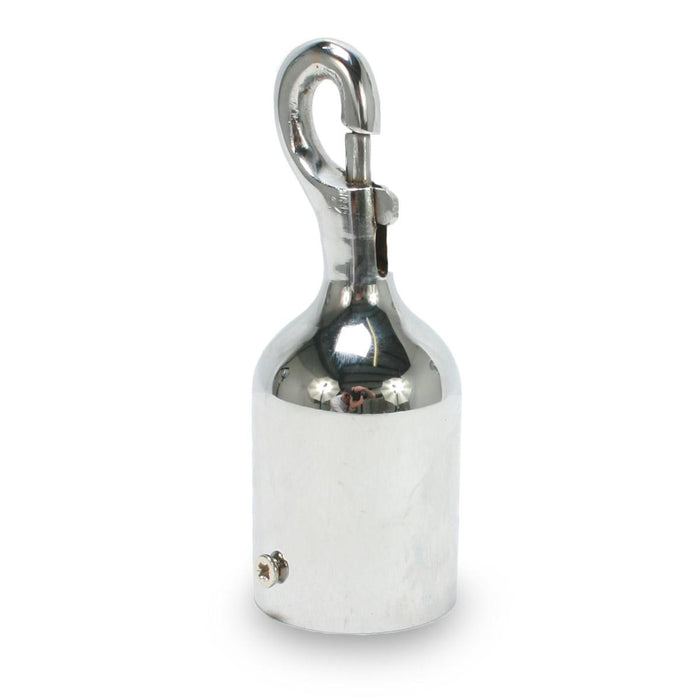 The rope snap hooks are so simple to add to the end of any 1 1/2" diameter rope. Simply tape up the end of the rope securely and insert into the end cap of this hook. Next, use the included full length set screw to secure the rope to the rope hook...and you are done.