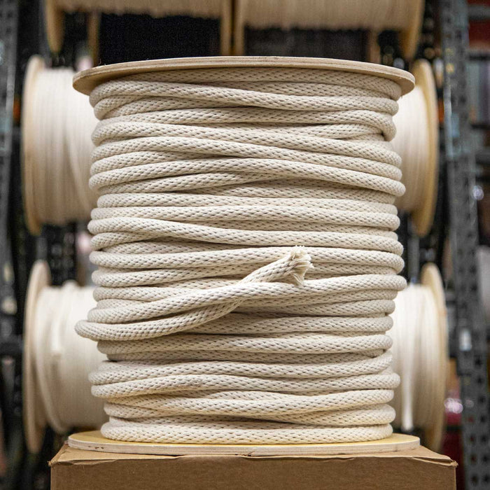 Solid braid cotton rope is a firm, round, braided cord. This popular rope is made from 100% natural cotton yarn with no finish and is commonly referred to as cotton weeping cord. This product is used extensively in masonry and brick work.