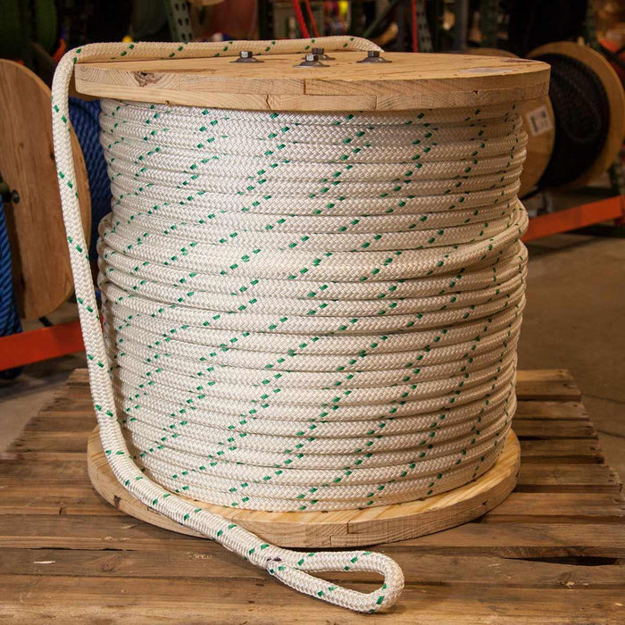 Double braid composite construction. This rope is a tough polyester jacket with a nylon core. A 6" eye splice comes on each end.