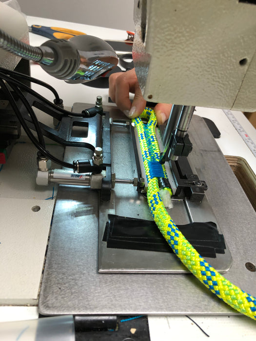 If you are looking for an eye in one of our static lines, this is the product for you. This process takes more time to complete since it goes to our other building to be stitched on our special stitching machine. The end result is a fantastic and completely safe to use splice on the end of your rope. These stitch splices maintain 90% of the average break strength of the rope.