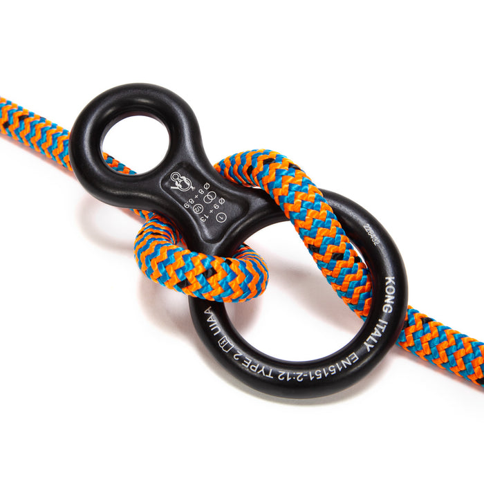 Classic figure of '8' descender. Perfect for belaying the first climber with a half, single and double ropes.